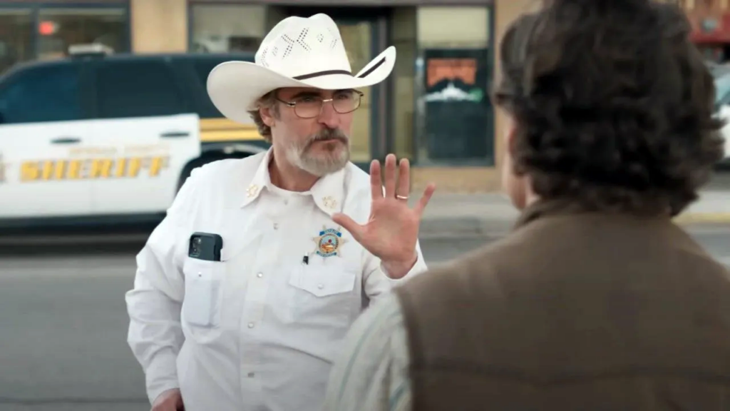 映画の舞台はコロナ禍真っ最中の2020年、アメリカ・ニューメキシコ州の小さな町エディントン。町の保安官ジョー(ホアキン・フェニックス)は喘息持ちだから息苦しくなるマスクを付けたくない。マスク着用を強いる市長テッド(ペドロ・パスカル)と対立し、突如としてジョーは市長選に立候補する。精神的に弱いジョーの妻ルイーズ(エマ・ストーン)、陰謀論者のその母ドーン(ディードル・オコンネル)、カルト集団の教祖ヴァーノン(オースティン・バトラー)などを巻き込んで、事態はとんでもない状況へと展開して行く。